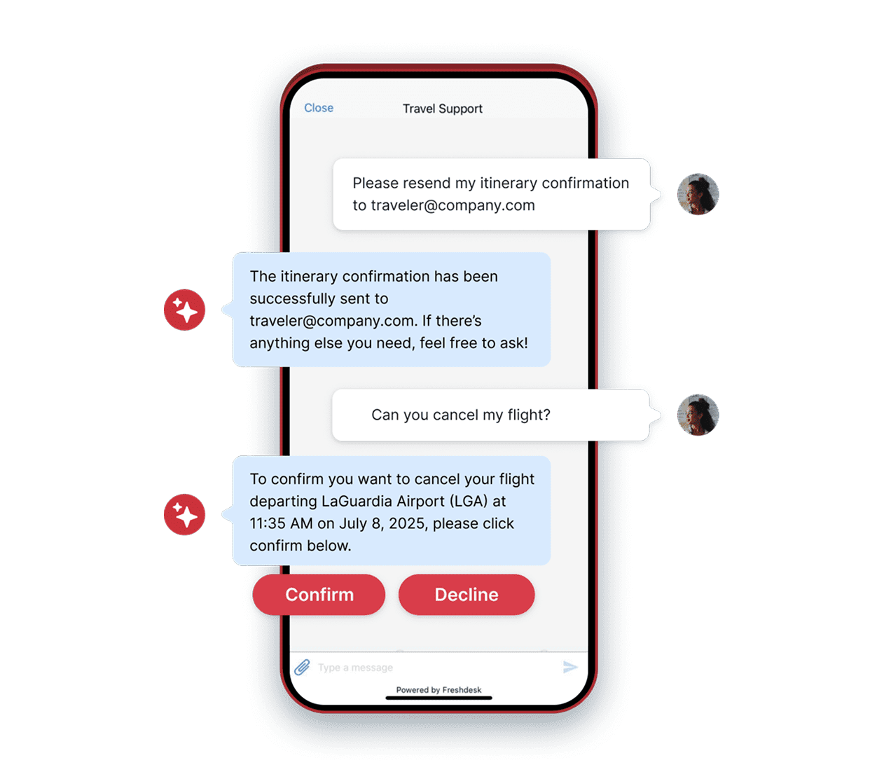Help travelers resolve questions on their own with AI chatbots that can answer common questions about bookings, policies, and more.